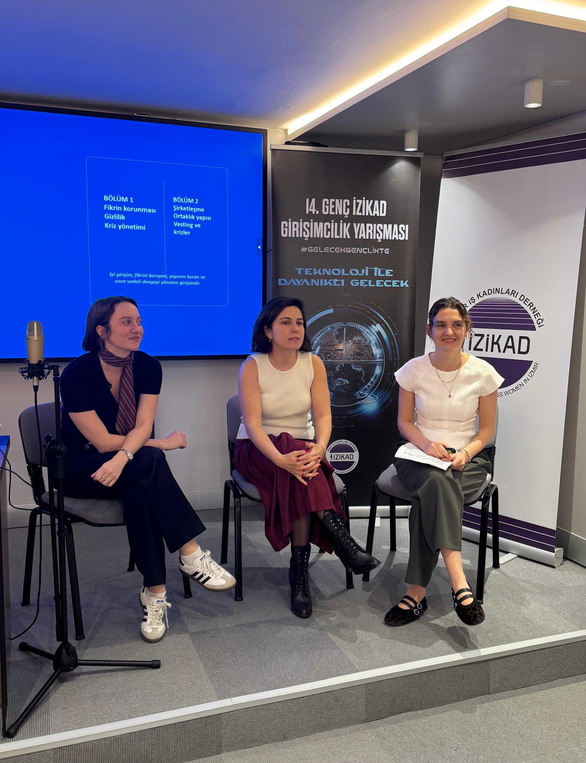 Ege Üniversitesi Yenilikçilik ve Girişimcilik Bölüm Başkanı ve İZİKAD Üyesi Prof. Dr. Özge Andiç Çakır ile İZİKAD Yönetim Kurulu Üyesi Hilal Tolasa Gündoğdu’nun yönetiminde devam eden eğitimlerde; fikir geliştirme, iş modeli oluşturma ve yatırım süreçleri tüm detaylarıyla ele alındı. Gizem Gülbent’in moderatörlüğünde yürütülen oturumlarda gençler, İZİKAD üyeleriyle bir araya gelerek mentörlük desteği alma şansı yakaladı.
